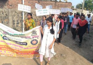 यावेळी गावातून बालविवाह प्रतिबंधक रॅली काढून, पोस्टर प्रदर्शन,घोषणा गाणी या माध्यमातून जनजागृती करण्यात आली