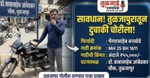 अशा गाड्या चोरणारे सापडणार कधी. ह्या भुरट्या चोरांचा वेळीच बंदोबस्त व्हायला हवाय पण दखल कोण घेतय का ? मिळालेल्या माहितीनुसार, फिर्यादी भैय्यासाहेब उत्तरेश्वर बनसोडे (वय ३८ वर्षे, रा. पोलीस लाईन धाराशिव) हे दि. १२ मार्च २०२६ रोजी तुळजापूर येथे आले होते. दुपारी २:३० ते ३:३७ या दरम्यान त्यांनी आपली एमएच २५ बीएच १६११ (MH 25 BH 1611) क्रमांकाची मोटरसायकल डॉ. बाबासाहेब आंबेडकर चौक परिसरात पार्क केली होती. काही वेळानंतर ते परतले असता, त्यांना आपली दुचाकी त्या ठिकाणी दिसून आली नाही. परिसरात सर्वत्र शोध घेऊनही गाडी मिळून न आल्याने अखेर त्यांनी पोलिसांत धाव घेतली.