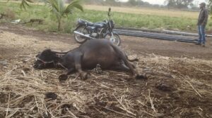 जवळगा (मेसाई ) येथे विज कोरुळून दोन म्हशी व एका बैलाचा मृत्यू
