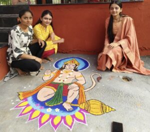 गुरुवारी सकाळी श्री हनुमान जन्मोत्सव पाळणा महिला भक्तगणांच्या वतीने सादर करण्यात आला. श्री हनुमान जन्मोत्सवा निमित्त गुलालाची उधळण करण्यात आली.वैष्णवी जवळगे , नेहा दुधभाते , साक्षी दुधनाळे यांनी श्री हनुमानांची अप्रतिम हुबेहुब रांगोळी काढून भाविकांचे लक्ष वेधून घेतले.