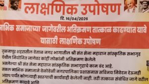 तुळजापूर प्रतिनिधी : – येथील वेताळ नगर भागातील नियोजित श्री संत सेना महाराज सांस्कृतिक संभागृह बांधकाम सुरु असून तेथील जागेवर अतिक्रमण वाढ झालेलं दिसून आले असल्यामुळे ते हटवण्यात यावं या मागणीसाठी सकल नाभिक समाज तुळजापूर यांच्या वतीने लाक्षणिक उपोषण करण्यात आले.