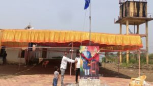 सकाळी ९:३० वाजता भारतरत्न डॉ. बाबासाहेब आंबेडकर यांच्या पुतळ्यास सदन शेतकरी नंदकुमा मारुती जाधव यांच्या हस्ते पुष्पहार अर्पण करण्यात आले व निळ्या ध्वजाचे ध्वजारोहण करण्यात आले.