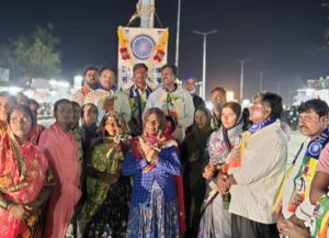 *वार्ड क्र. 10 मधून सचिन युवराज राठोड ( सर्वसाधारण पुरुष) हे तीन उमेदवार निवडणुकीच्या मैदानात उतरले असून या तिन्ही उमेदवाराच्या प्रचाराचा शुभारंभ काल शुक्रवार दि.21/11/2025 रोजी वंचित बहुजन आघाडीचे जिल्हा उपाध्यक्ष मा. आर.एस गायकवाड,तसेच वंचित बहुजन आघाडी तुळजापूर तालुकाध्यक्ष मा. गोविंद भंडारे यांच्या शुभहस्ते भारतीय संविधान निर्माते महामानव,भारतरत्न डॉ. बाबासाहेब आंबेडकर आणि थोर संत सेवालाल महाराज यांच्या प्रतिमेचे पूजन करून, तसेच नळदुर्ग येथील संविधान चौकाला पुष्पमाला अर्पण करून अभिवादन करत या* *उमेदवारांच्या प्रचाराची सुरुवात करण्यात आली. यावेळी बोलताना जिल्हा उपाध्यक्ष आर.एस गायकवाड म्हणाले की प्रभाग क्रमांक 10 मधून सचिन युवराज राठोड यांच्या रूपाने वंचित बहुजन आघाडीचा नळदुर्ग नगर परिषदेचा पहिला नगरसेवक निवडून आल्याशिवाय राहणार नाही असा विश्वास व्यक्त करत भीम नगर नळदुर्ग येथील प्रभाग क्रमांक दहा मधील सर्व मतदारांनी वंचित बहुजन आघाडीच्या उमेदवाराला मतदान रुपी आशीर्वाद देऊन पाठबळ द्यावे अशी विनंती त्यांनी यावेळी बोलताना केली. तर तालुकाध्यक्ष गोविंद भंडारे यांनी वंचित बहुजन आघाडी या राजकीय पक्षाच्या माध्यमातून सर्वसामान्य व वंचित घटकातील नागरिकांना वंचित बहुजन आघाडी या पक्षाच्या माध्यमातून राजकीय सत्तेकडे जाण्यासाठी मार्ग निर्माण करून दिल्याबद्दल पक्षाचे राष्ट्रीय अध्यक्ष आदरणीय बाळासाहेब आंबेडकर साहेबांचे आभार व्यक्त करत, बहुजन वर्गातील सर्व मतदारांना आपले मत आपल्याच पक्षाला आपले मत आपल्याच माणसाला देऊन आपलेच उमेदवार निवडून आणा आणि प्रस्थापितांना घाम फोडत वंचित बहुजन आघाडीची ताकद दाखवा अशी विनंती उपस्थितांना केली. यावेळी वंचित बहुजन आघाडीचे निष्ठावंत कार्यकर्ते युवराज परशुराम राठोड, भारतबाई युवराज राठोड, परशुराम नाईक, अनिल बनसोडे, उमेदवार सचिन युवराज राठोड, उमेदवार ओंकार शिवलिंग कलशेट्टी, सचिन चिदानंद कलशेट्टी, खंडू जाधव, दगडू जाधव, राहुल राठोड,रोहन राठोड, सुरज जाधव, सचिन राठोड, अरुण नाईक, प्रदीप पवार, अर्जुन जाधव, शिवराज राठोड, महेश राठोड, सुभाष पवार, बबन जाधव, नामदेव जाधव, सुधाकर नाईक, इत्यादी पुरुष तर महिलांमध्ये भजनाबाई नाईक, लालूबाई जाधव, चांदुबाई चव्हाण, रानुबाई नाईक, सुनिता नाईक, अनिता नाईक, आशाबाई राठोड, शांताबाई राठोड, विमलबाई जाधव, छायाबाई नाईक, संगीता जाधव, शांताबाई नाईक, सुनिता जैनू राठोड, सुनिता जाधव, सुनिता जाधव, शैलेश डुकरे, अमर कलशेट्टी, ऋषिकेश नाईक, गोरख जाधव अंबुबाई कांबळे,विमल कांबळे, संपदा कांबळे आदी महिला कार्यकर्तेत्या ही मोठ्या संख्येने उपस्थित होत्या.*