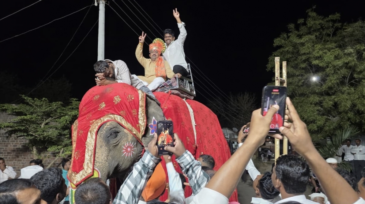जिल्हा परिषद निवडणुकीमध्ये सर्वाधिक मताधिक्याने विजय झाल्याबद्दल : गणेश चिवटे यांची दिवेगव्हाण येथे हत्तीवरून मिरवणूक! Tuljai Express